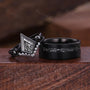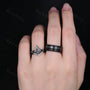 Natural Black Rutilated Quartz Couples Ring Black Gold Promise Ring Set Art Deco His and Hers Wedding Band Mens Meteorite Ring Black Gems