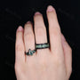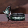 Natural Moss Agate Couples Ring, His and Hers Moss Agate Ring Set, Matching Nature Inspired Promise Rings, Alternative Engagement Ring
