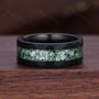 ?His ring is Black Tungsten Carbide with moss agate inlay.