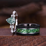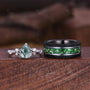 Natural Moss Agate Couples Ring Set Men's Crushed Emerald Band Vintage His and Her Wedding Band Promise Ring For Men and Women Green Rings
