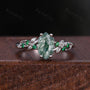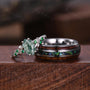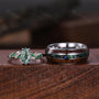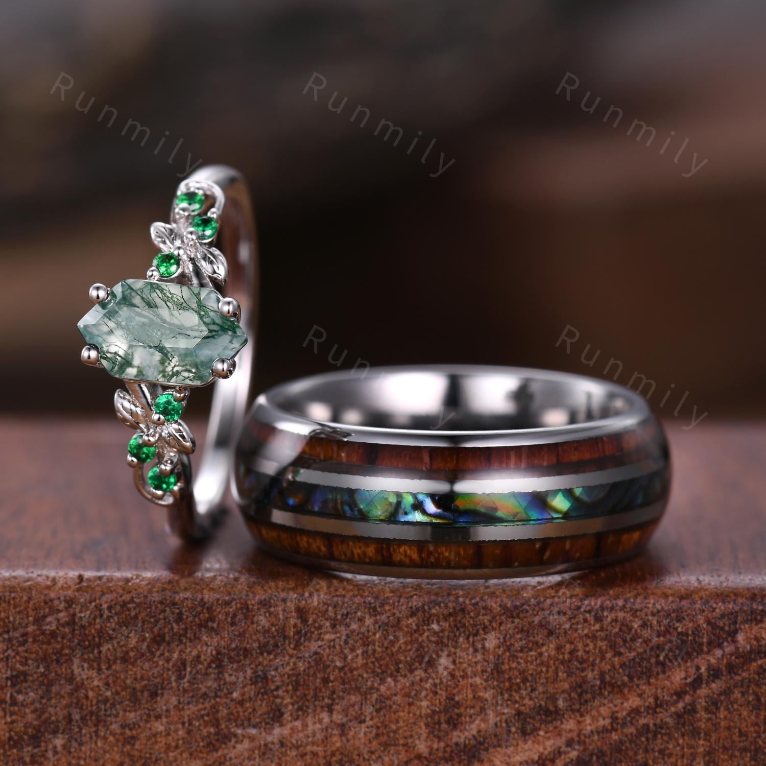 Natural Moss Agate Couples Ring Vintage Matching Promise Ring Set Silver His and Hers Wedding Band Mens Wooden Ring Green Agate Ring