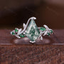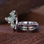 Natural Moss Agate Couples Ring Vintage Matching Promise Ring Set Twig Leaf Ring His and Hers Wedding Band Mens Wooden Ring Green Agate Ring