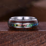 ?His ring is Silver Tungsten Carbide with wooden inlay.
