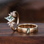 Natural Moss Agate Couples Ring Yellow Gold Matching Ring Set His and Hers Wedding Band Promise Ring For Men For Women Kite Cut Ring