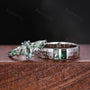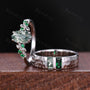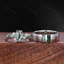 Natural Moss Agate & Emerald Couples Ring Sterling Silver His and Hers Wedding Band Mens Baguette Cut Ring Matching Couple Promise Ring Set