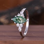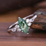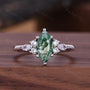 Natural Moss Agate Engagement Ring Unique Marquise cut Green Agate Ring Moissanite Cluster Wedding Ring Bridal Promise Ring Platinum Ring