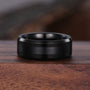 ►His ring is Black Tungsten Carbide.
