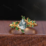 Nature Inspired Moss Agate and Emerald Couples Ring Yellow Gold Matching Ring Set His and Hers Wedding Band Mens Tungsten Ring Green Ring