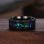 ?His ring is Black Tungsten Carbide with fire green opal and black sandstone.