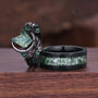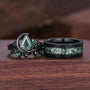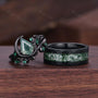 Nature inspired Moss Agate couples ring set gothic black gold His and Hers wedding band unique moon style ring Mens moss agate tungsten ring