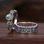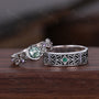 Nature inspired Moss Agate couples ring sterling silver matching ring set His and Her wedding band Mens emerald ring Anniversary rings