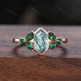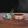 Nature Inspired Moss Agate & Emerald Couples Ring Set Rose Gold Matching Wedding Ring His and Hers Wedding Band Mens Emerald Promise Ring