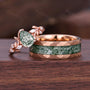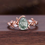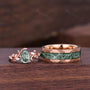 Nature Inspired Moss Agate Rings Vintage Mens Moss Agate Ring 2PCS His and Hers Couple Ring Set Matching Promise Rings Twig Leaf Ring