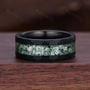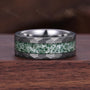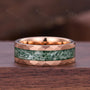 ?His ring is Rose Gold Tungsten Carbide with moss agate inlay.