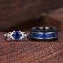 Orion Nebula Ring Set, His and Hers Wedding Band, Mens Crushed Sapphire Ring, Blue Sapphire Matching Couples Ring, September Birthstone Ring