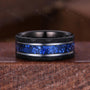 ►His ring is Black Gold Tungsten Carbide with Crushed Blue Sapphire Inlay