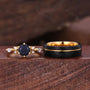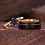 Orion Nebula Ring Set, Matching Promise Rings for Couples, Blue Sandstone Rings Engagement Ring Anniversary Gift, Yellow Gold Rings