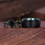 Oval cut Black Onyx Couples Ring Set Twig Leaf Ring Black Gold His and Hers Wedding Band Women Nature Inspired Ring Green and Black Rings