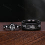 Oval Cut Black Onyx Couples Ring Set Vintage Black Gold Ring Mens Meteorite Tungsten Ring His And Hers Wedding Band Leaf Style Promise Ring