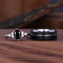 Oval cut Black Onyx Couples Ring Unique Diamond Cluster Bridal Ring Silver His and Hers Ring Mens Hammered Band Promise Rings For Couples