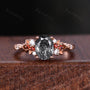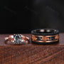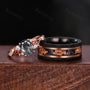 Oval cut black rutilated quartz couples ring set rose gold matching promise ring His and Hers wedding band Mens meteorite ring bridal ring