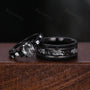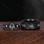 Oval cut Black Rutilated Quartz Couples Ring Set Vintage Black Gold Ring Mens Meteorite Tungsten Ring His and Hers Wedding Band Promise Ring