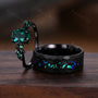 Oval cut emerald couples ring set black gold matching promise ring His and Her wedding band Mens hammered tungsten ring anniversary gifts