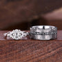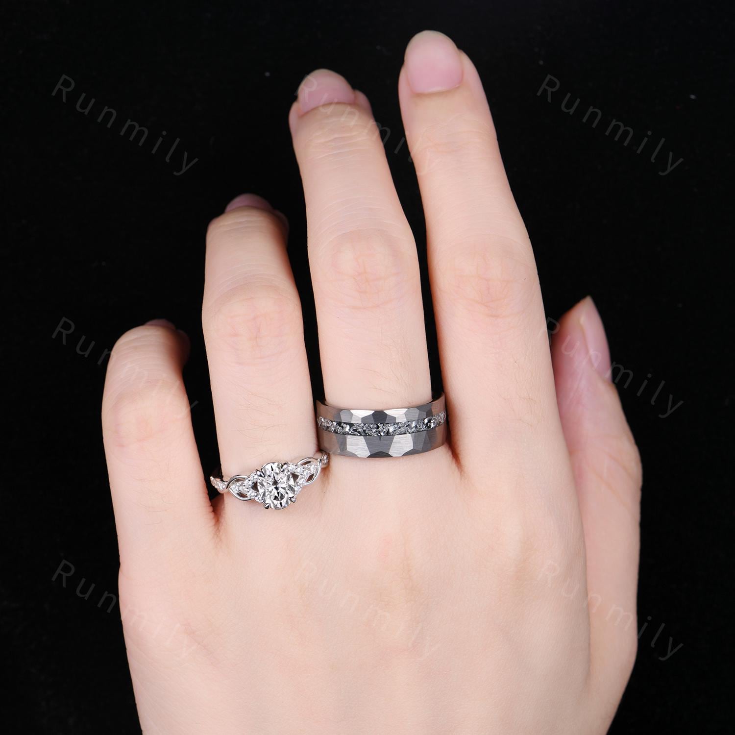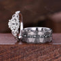 Oval cut Moissanite couple ring, vintage His and Hers wedding band, Mens silver tungsten ring, Moissanite jewelry for couple, promise rings