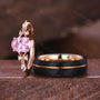 Oval cut Pink Diamond Ring Vintage Couples Ring Set Rose Gold Matching Rings His and Hers Wedding Band Promise Ring For Men For Women