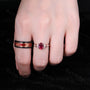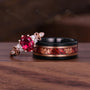 ►His ring is Black Gold Tungsten Carbide with Crushed Ruby and gold leaf Inlay
