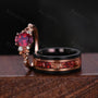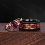 Oval cut Ruby couples ring set rose gold matching promise ring vintage His and Hers wedding band Mens ruby ring anniversary ring gifts
