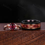 ►His ring is Black Tungsten Carbide with rose gold leaf and ruby inlay.