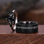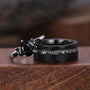 ►His ring is Black Gold Tungsten Carbide with meteorite inlay.