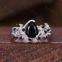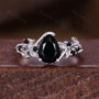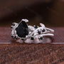 Pear Cut Black Onyx Engagement Ring Set Vintage Leaf Style Wedding Band Sterling Silver Bridal Set Nature Inspired Promise Anniversary Ring