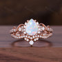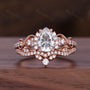Pear Cut Moissanite Engagement Ring Set Unique Rose Gold Bridal Ring Set Diamond Cluster Wedding Curved Stacking Band Promise ring set