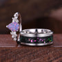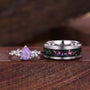 Pear cut Purple Opal Couples Ring Lavender Opal Matching Ring Set His and Hers Wedding Band Promise Rings For Men For Women Vine Leaf Ring