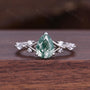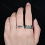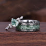 Pear Moss Agate Ring His and Hers Moss Agate Couples Ring Set Silver Matching Promise Rings Alternative Engagement Ring Mens Moss Agate Ring
