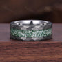 ►His ring is White Gold Tungsten Carbide with moss agate inlay.