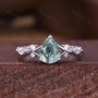 Pear shape moss agate ring vintage rose gold green agate engagement ring unique twig twisted moissanite wedding ring bridal promise ring