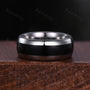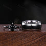 ►His ring is Silver Tungsten Carbide with black onyx inlay.