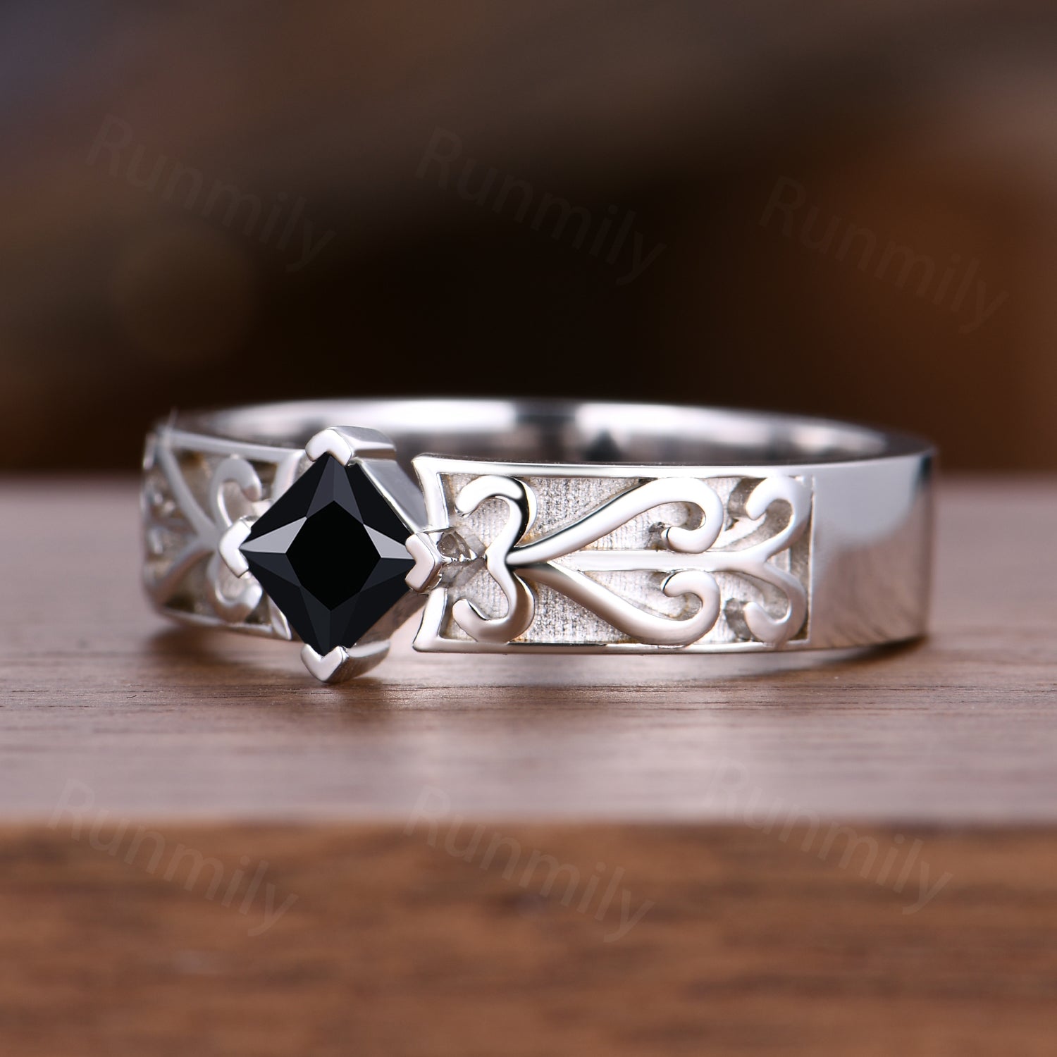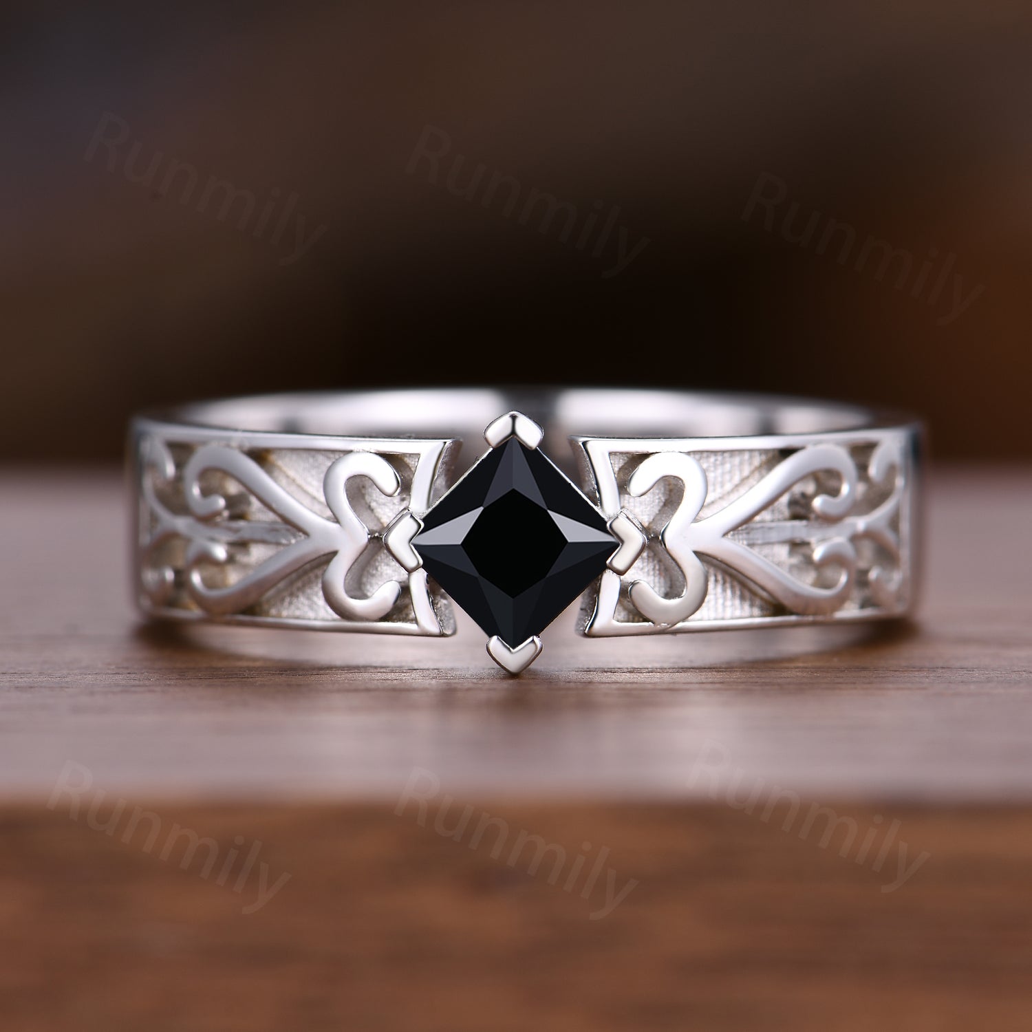 Princess Cut Black Onyx Mens Ring Celtic Love Knot Wedding Band 14k White Gold Mens Vintage Promise Ring