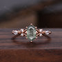 Retro long hexagon moss agate ring vintage rose gold agate engagement ring unique twig twisted moissanite wedding ring bridal promise ring