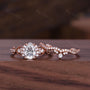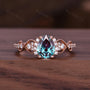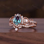 Rose Gold Alexandrite Engagement Ring Set For Women Unique Pear Cut Bridal Ring Set Moissanite Cluster Wedding Curved Promise ring