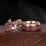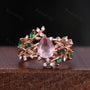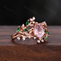 Rose Quartz Floral Leaf Couples Ring Set Rose Gold His and Hers Wedding Band Mens Pink Tungsten Ring Natural Inspired Ring Matching Ring Set