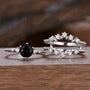 Round Cut Black Onyx Engagement Ring Set Sterling Silver Double Curved Moissanite Bridal Ring Set Unique Promise Anniversary Ring