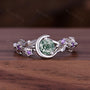 Round cut Moss Agate Engagement Ring Sterling Silver Art Deco Crescent Leaf Amethyst Ring Women Nature inspired Bridal Promise Wedding Ring