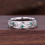 Twig Leaf Emerald Mens Wedding Band Unique Mens Emerald Wedding Ring Mens Silver 5mm Ring His Engagement Ring Band Gift For Husband