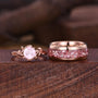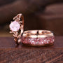Twig Leaf Rose Quartz Couples Ring Rose Gold Matching Ring Set His and Hers Wedding Band Promise Ring For Men For Women Pink Gemstone Rings