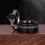 ►His ring is Black Gold Tungsten Carbide with meteorite inlay.