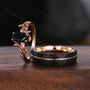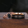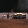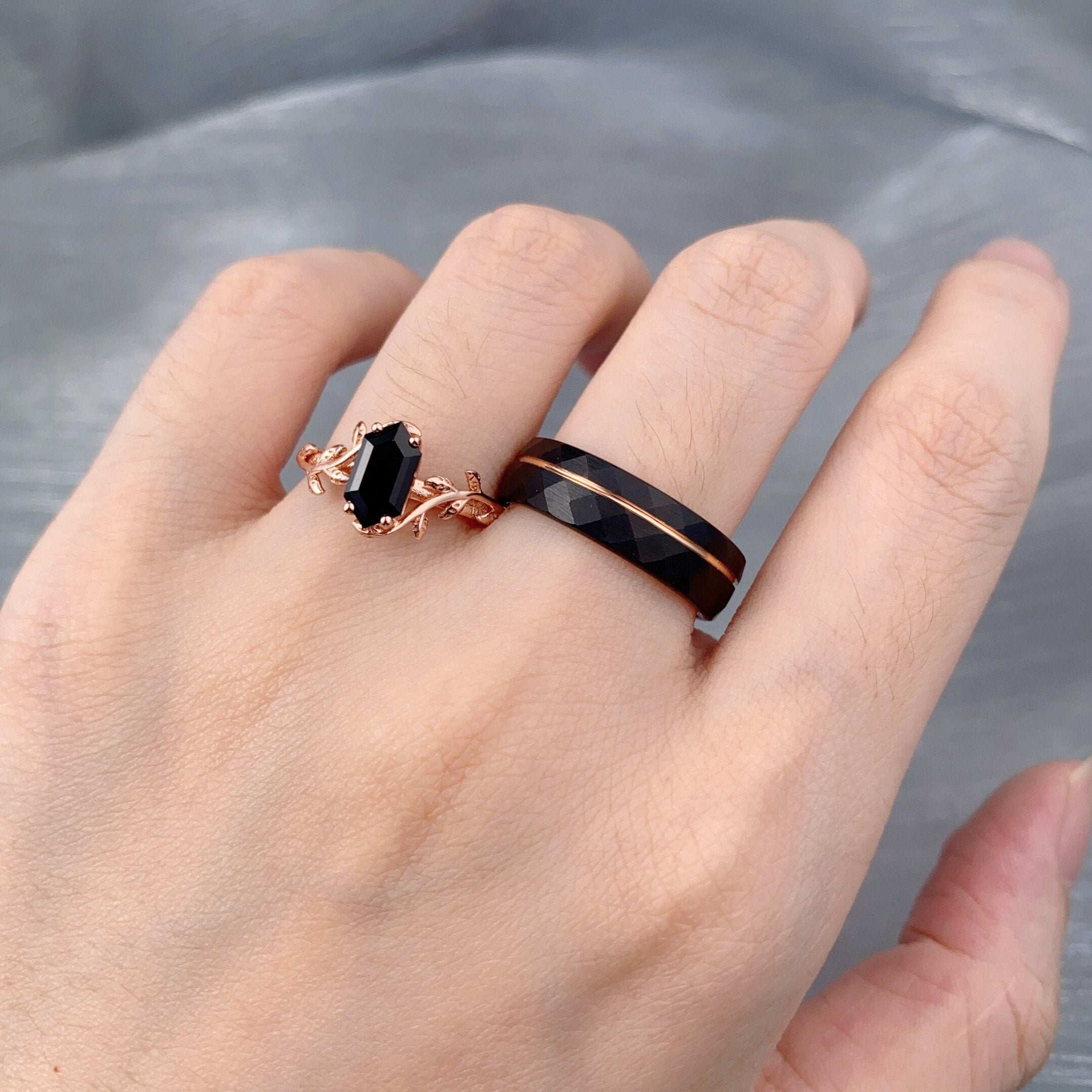 Vine Leaf Black Onyx Couples Ring Rose Gold Matching Ring Set His and Hers Wedding Band Promise Ring For Men For Women Black Gemstone Ring